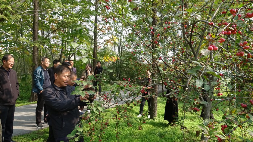 会后,调研组分别在种质资源圃、海棠示范园、水杉林、三连栋温室大棚、采穗圃开展了实地调研指导,并针对中心提升发展、种苗基地建设、生态环境教育和科研试验示范等方面工作提出具体建议。
